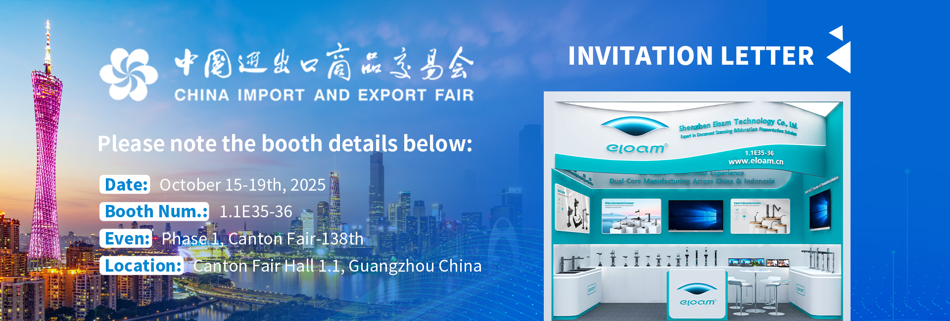 READ MOREOn April 15, 2025, the 137th Canton Fair grandly opened in Guangzhou. As a leading enterprise in the field of digital and intelligent application services, Eloam showcased multiple innovative document cameras and industry solutions at Booth 1.1J09-10 (Exhibition Period: April 15–19)